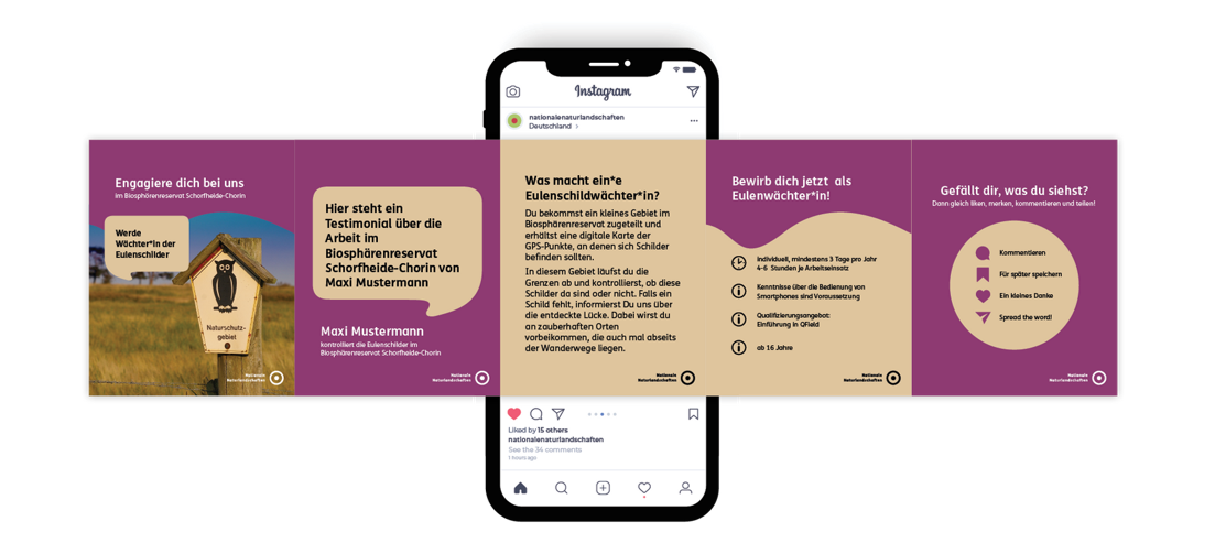 Mit der Bereitstellung entsprechender Content-Vorlagen für Instagram und Facebook im November 2024 begegneten wir dem Bedarf der Markennutzenden an Social-Media-Vorlagen. Wir unterstützen damit die Anwender*innen darin, ihren Fundus an eindrücklichen Bildmaterialien aus den NNL sowohl konform des NNL-CD als auch entsprechend der Anforderungen an einen Social-Media-Content zu veröffentlichen.